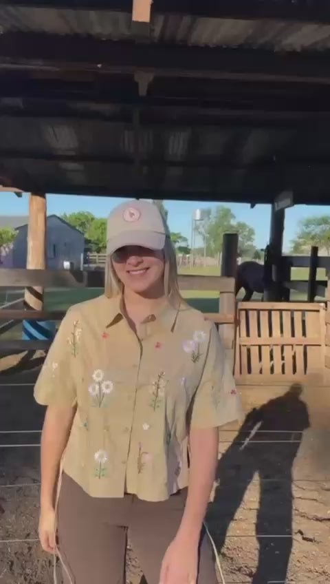 Camisa Corta Bordada Tostado
